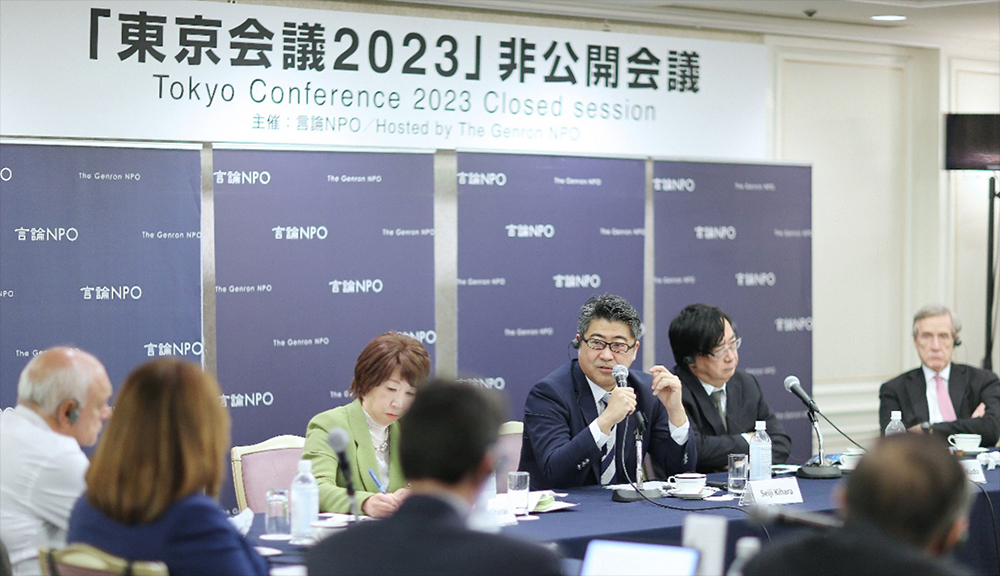 続く非公開会議2では、「壊れ始めた自由と民主主義の修復は可能か」をテーマに議論が行われました。このセッションには、ゲストスピーカーとして木原誠二内閣官房副長官が登壇。日本の首相が戦後初めて戦地に入るという、岸田文雄首相による歴史的なウクライナへの電撃訪問に同行した木原氏は、まさにこの日の朝に帰国。異例の強行軍の中でこの「東京会議2023」に駆けつけ、10カ国のシンクタンクの代表と率直な意見交換を行いました。