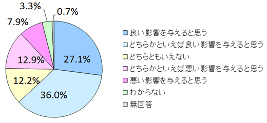 今年10月に交渉が妥結したTPPの日本経済への影響については、「良い影響を与えると思う」「どちらかといえば良い影響を与えると思う」の回答を合わせた割合が63.1%に上りました。主要政策40項目への評価と合わせ、TPPに対する有識者の肯定的な見方が強いことが裏付けられました。