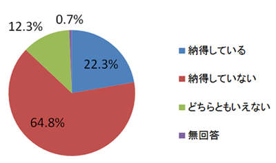 11月21日、安倍首相は消費税の10%への引き上げを先送りし、その信を有権者に問うために衆議院解散に踏み切りました。この首相の決断について納得しているかを尋ねたところ、「納得していない」の64.8%が、「納得している」の22.3%を大きく上回りました。