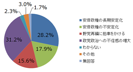 3割程度が今回の選挙の結果、安倍政権の長期安定化と政党政治への不信感の増大が起こると予想している