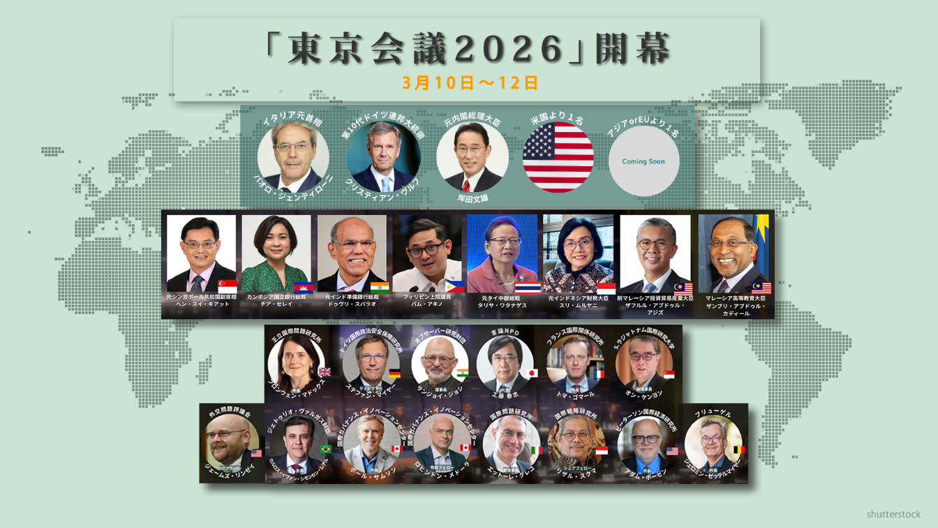 「東京会議2026」では、「大国の力による秩序が拡大する世界で、いかに多国間主義を再構築できるか」を全体テーマに、いま世界が直面している現実と、そこにどのような選択肢が残されているのかを正面から議論します。