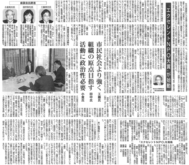 【毎日新聞】「エクセレントNPO大賞」が始動