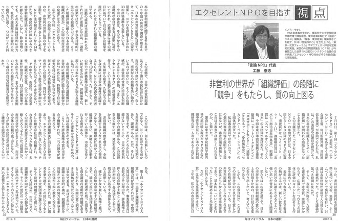 【毎日フォーラム】エクセレントNPOを目指す ―非営利の世界が「組織評価」の段階に「競争」をもたらし、質の向上図る