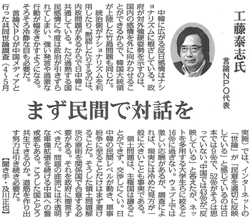 中韓に広がる反日感情はナショナリズムに根ざしている。政府が対外強硬姿勢を示すのは、国内の感情を外に向かわせることができるからで、韓国大統領が上陸した竹島問題も同じだ。