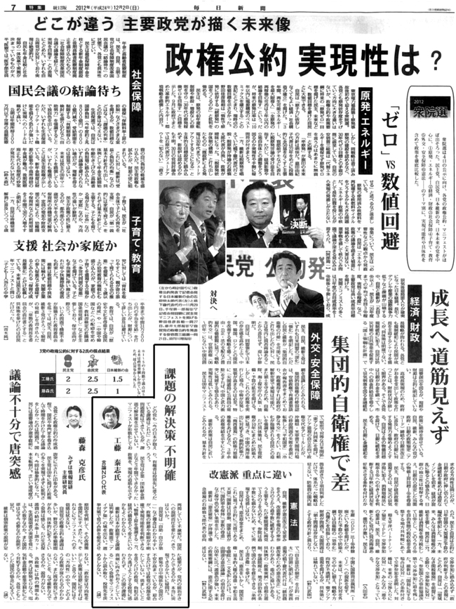 【毎日新聞】どこが違う 主要政党が描く未来像 -課題の解決策 不明確