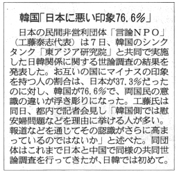 【産経新聞】韓国「日本に悪い印象76.6%」