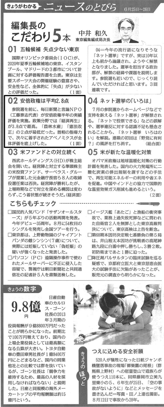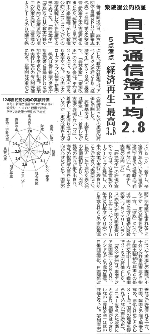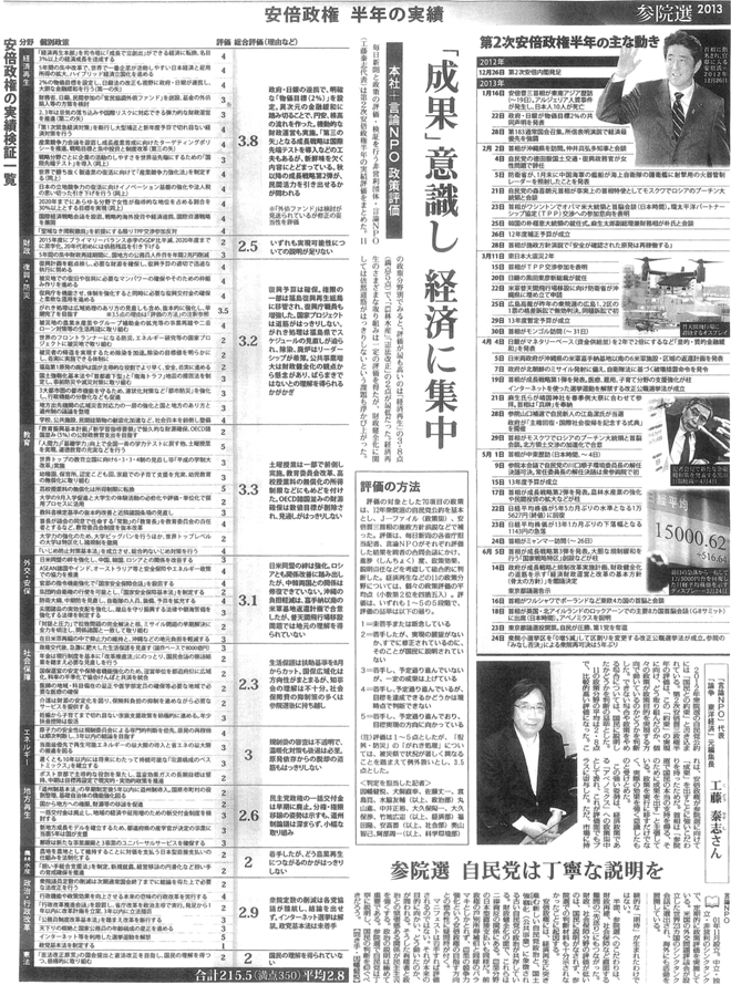 【毎日新聞】言論NPO、安倍政権半年の実績を毎日新聞と共同評価