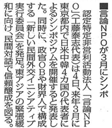 【毎日新聞】「言論NPOが3月にシンポ」