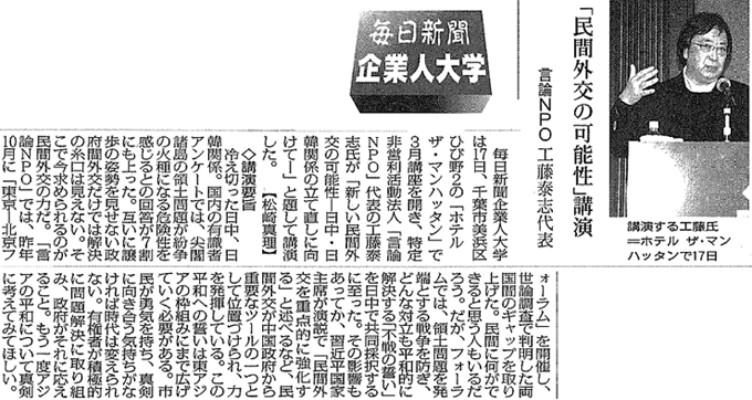 【毎日新聞】毎日新聞企業人大学「民間外交の可能性」講演