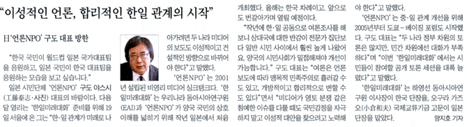 「第2回日韓未来対話」に向けた取り組みついて、朝鮮日報に工藤のインタビューが掲載されました。