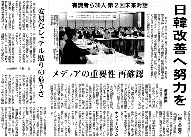 【毎日新聞】日韓改善へ努力を メディアの重要性再確認