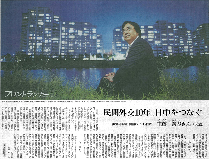 【朝日新聞別刷『be on Saturday』】フロントランナー:民間外交10年、日中をつなぐ