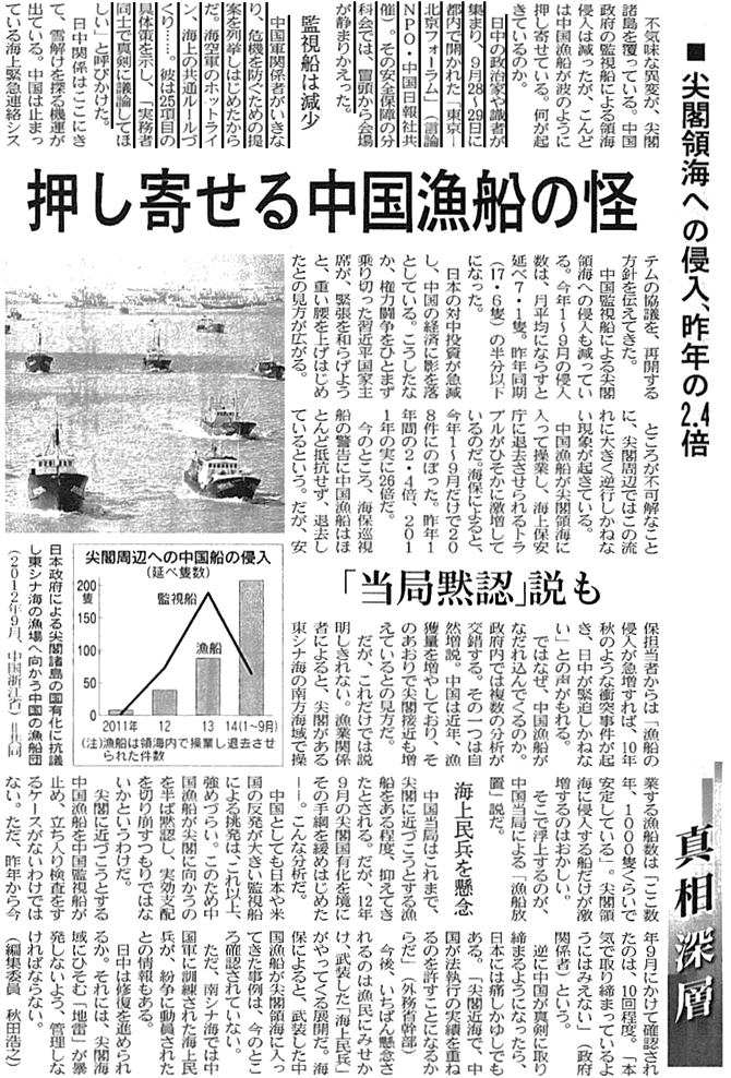 【日本経済新聞】真相深層 押し寄せる中国漁船の怪『当局黙認』説も