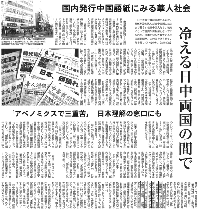 【毎日新聞】国内発行中国語紙にみる華人社会
