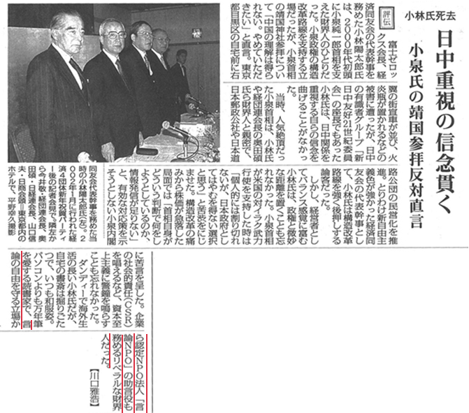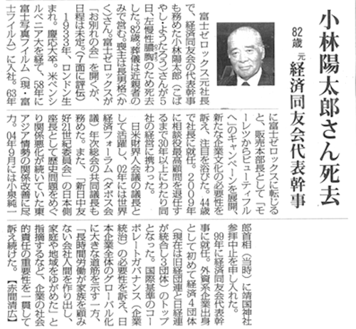 【毎日新聞】小林陽太郎氏死去 日中重視の信念貫く