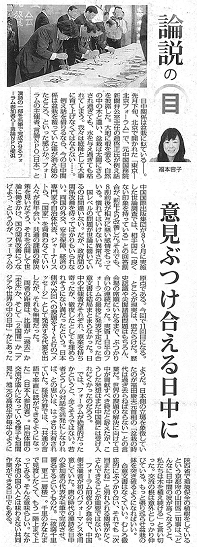 【毎日新聞】論説の目 意見ぶつけ合える日中に