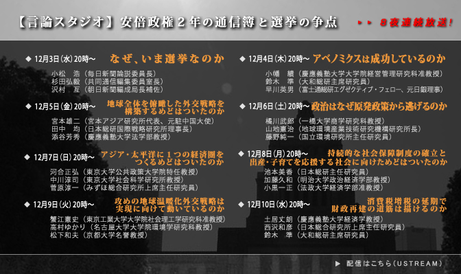 総評や各項目の詳しい評価については、言論NPOホームページでご覧いただけます。また、明日2日から8夜連続で、今回の評価会議を放送いたします。