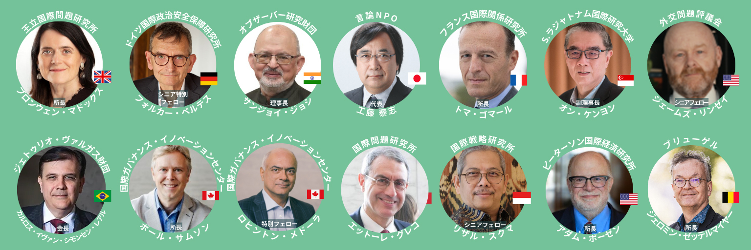 今年は、米国、欧州、アジア、南米など12か国・13の世界を代表する主要シンクタンクのトップに加え、ドイツのクリスティン・ヴルフ元大統領、イタリア元首相で昨年まで欧州委員(経済担当)を務めたパオロ・ジェンティローニ氏、米国トランプ政権の関係者をはじめとする、国家首脳級のスピーカー約40名が参加予定です。世界の最前線で意思決定に関わってきた当事者が、一堂に会して議論を行います。