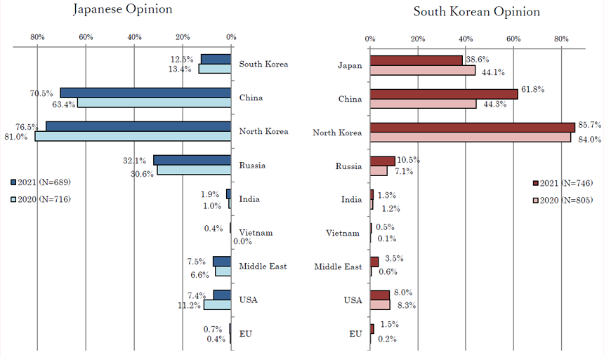 The rapid spread of negative national sentiment in each country over the last few years can be traced back to reactions by the people in each country to the government of the other. Current South Korean President Moon Jae-in, someone who has made decisive actions that have contributed to the continued distrust between Japan and South Korea, will retire after the 2022 presidential election to be held in March next year. While in Japan, a new government took power in October under the leadership of Fumio Kishida. Unless the new governments of both countries resolve to improve this situation, it could be prolonged and become a structural part of the bilateral relationship.