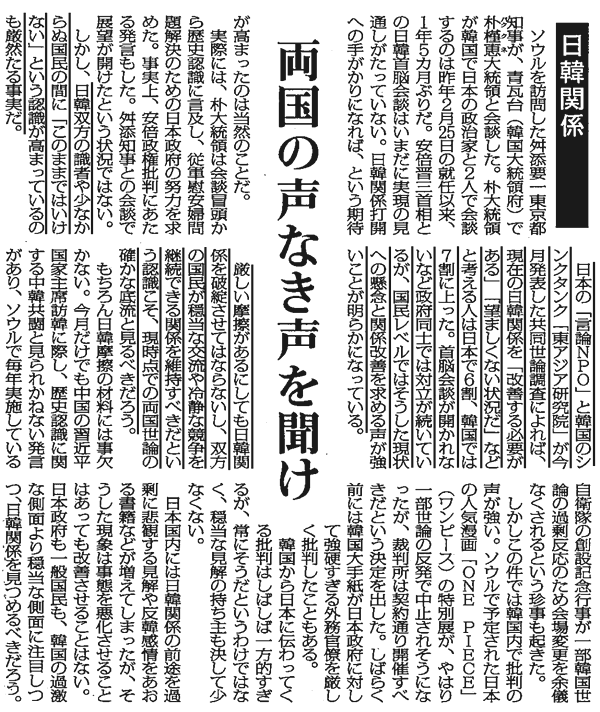 【毎日新聞】日韓関係 両国の声なき声を聞け