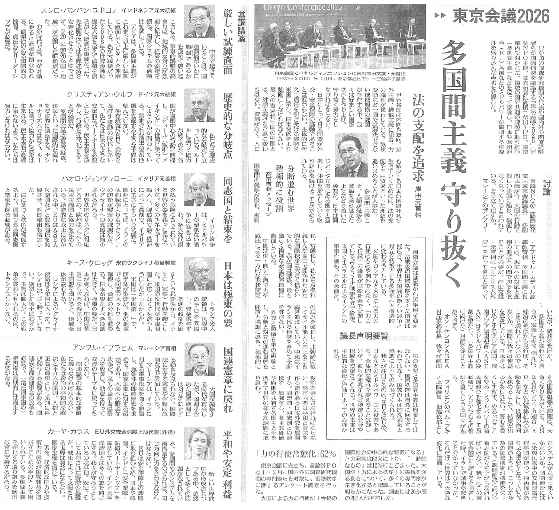 【読売新聞】東京会議2026 多国間主義 守り抜く
