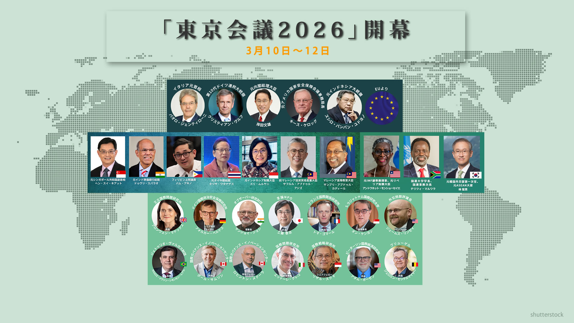 今年の「東京会議2025」は、2025 年3月3日から5日の日程で開催されました。海外からは、国連事務総長のグテーレス氏、ユドヨノ前インドネシア大統領などアジアやヨーロッパから5名の首脳級要人が参加し、日本からも岸田総理の他、石破茂総理や中谷元防衛大臣を始め、世界20ヵ国から集まった約40名の要人や識者が参加しました。今回の報告書は、公開会議の他、非公開会議についても議論とその雰囲気を可能な限り掲載しました。ぜひ、ご一読いただければ幸いです。