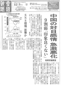 これまでの調査では、日本国民の中国への感情悪化がより目立っていたものの、今回の調査では中国国民の日本への好感度が著しく悪化しただけではなく、日中関係の重要性や経済も含めた、あらゆる分野での日中協力への中国国民の支持が劇的に後退しており、これまでの20年間の調査で経験したことがない亀裂が国民意識に見え始めています。こうした調査結果も、日中両国のメディアで大きく取り上げられました。