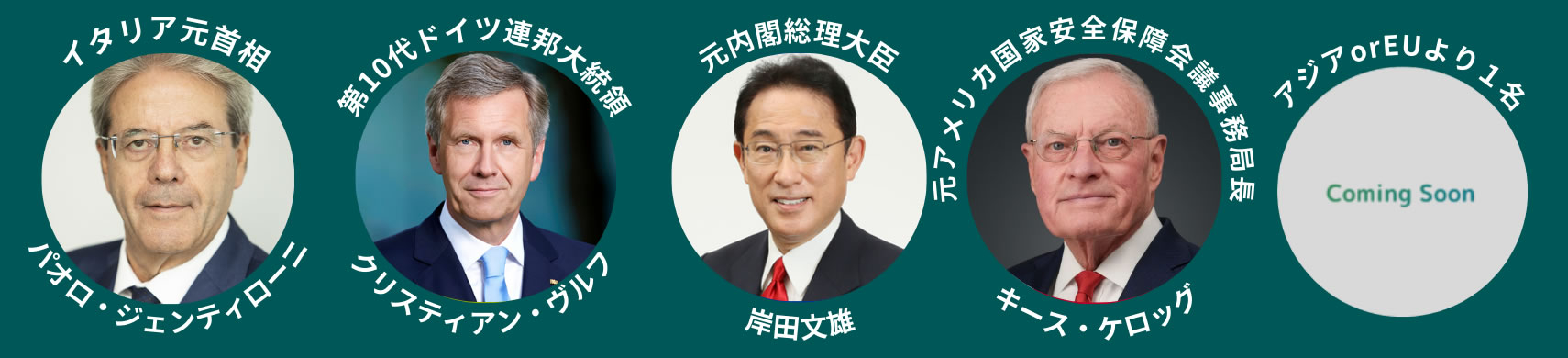 今年は、米国、欧州、アジア、南米など12か国・13の世界を代表する主要シンクタンクのトップに加え、ドイツのクリスティン・ヴルフ元大統領、イタリア元首相で昨年まで欧州委員(経済担当)を務めたパオロ・ジェンティローニ氏、米国トランプ政権の関係者をはじめとする、国家首脳級のスピーカー約40名が参加予定です。世界の最前線で意思決定に関わってきた当事者が、一堂に会して議論を行います。